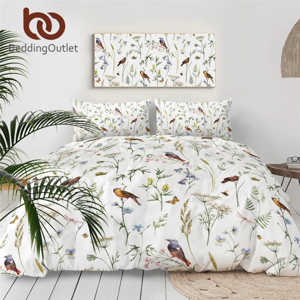 Beddingoutlet Watercolor Floral Bedding Set Butterfly Birds Bedspreads Botanical Duvet Cover 3pcs Leaf Insect Comforter Cover Bedding Sets Aliexpress